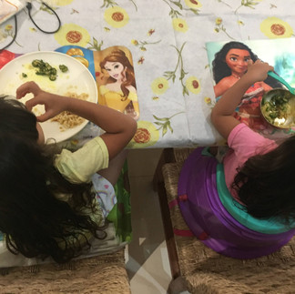 As usual, the weekly struggle of preparing, cooking, and providing a good variety of food for my rambunctious girls continues. At least I am lucky that they eat all the different cuisines I present to them at mealtime fairly well. Sara Gail is especially enjoying eating the Indian meals with her hands now, and she is doing a pretty good job, much better than I did when I first started trying! I also try and throw in some treats for them every once in a while too, including homemade popcorn for movie nights!